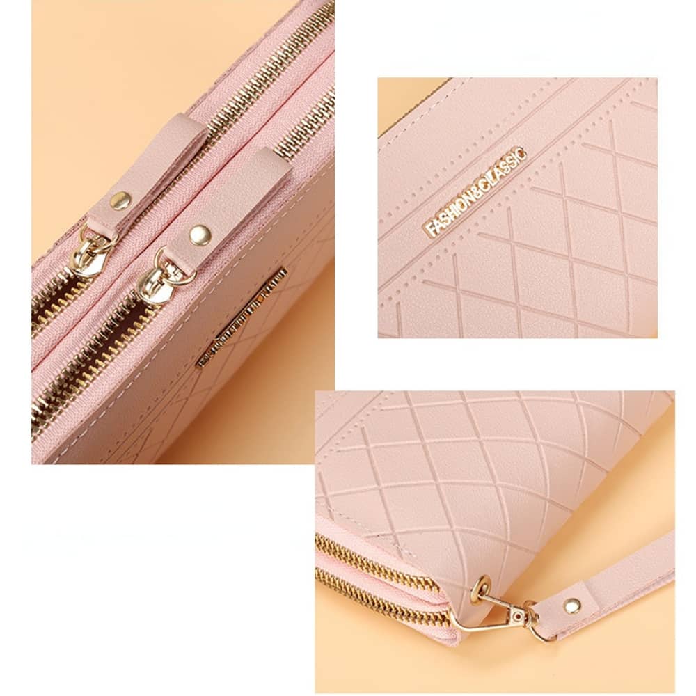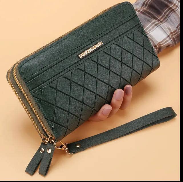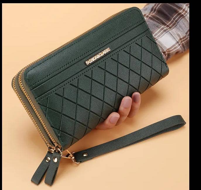 Simple Pure Leather For Women. It Has A Double Zipper With Many Compartments. Available In Red, Grey, Pink, Black, Green, Dark Pink Colors. For Women With Exquisite Taste.